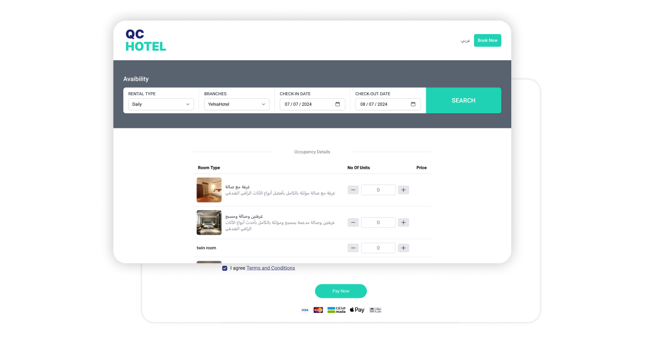 الحل الشامل لإدارة وتشغيل الفنادق الشقق ,المنتجعات والمنشآت السياحية