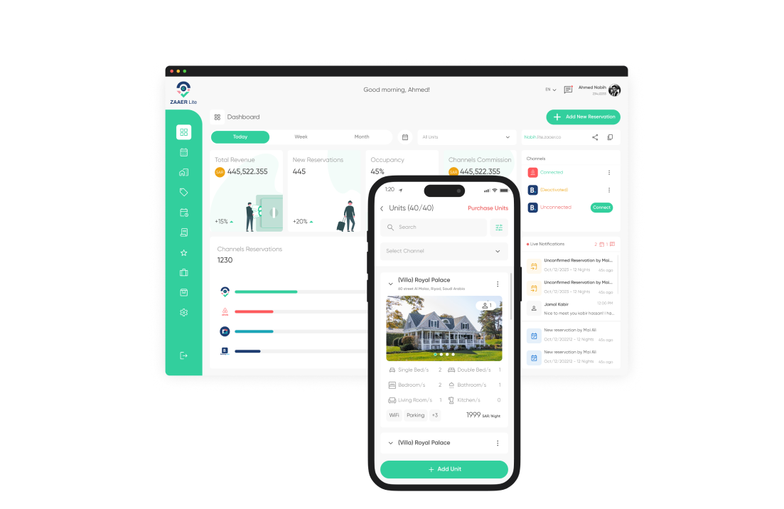 زائر يوفر نظام حجوزات متكامل بالإضافة الى الربط مع المنصات العالمية مثل إكسبيديا والمسافر وبوكنق والعشرات من المنصات العالمية لتتمكن من ادارة الأسعار وتوفر الغرف من خلال منصة زائر فقط! ونوفر الربط مع وزارة السياحة وشموس، بالإضافة إلى أنظمة مالية، محاسبية، إدارة مخزون، وتقارير مفصلة والعديد من المزايا، يوفر زائر تطبيق للجوال لمتابعة أسهل لأعمالك!